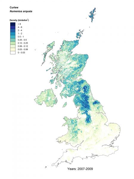 Curlew densities are greatest in upland areas of the Pennines, North Yorkshire, the Southern Uplands and Orkney. Population declines have been widespread, with a -44% population decline across the UK from 1995–2010, which are been particularly marked in western Britain. Densities in the English uplands appear to have held up.