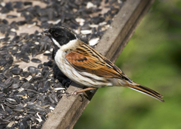 Despite its name, the Reed Bunting breeds across a range of habitats from reedbeds and conifer plantations to hedgerows and arable crops like oil seed rape. During the non-breeding season, this species is dependent upon weed seeds, and as such, Reed Buntings would have joined other species in winter flocks on farmland stubbles. The decline of this species matches that of other farmland species like Tree Sparrow and Linnet. The increasing winter use of gardens during the 1980s probably reflects the decrease in availability of winter food.