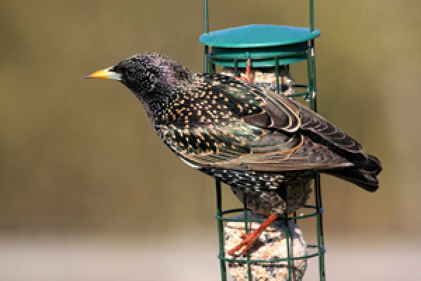 Quite a few garden birdwatchers loathe Starlings because of the way they seem to descend on food in large numbers and eat everything in a few minutes. This attitude is unfair. Starlings are very gregarious birds. So feeding quickly in flocks is, after all, what they have evolved to do. However, it is easy to see this behaviour as greed, and the concerned garden bird feeder, who has a limited budget, may have to ration the amount of food the Starlings can get. The easiest way to do this is to feed the small birds within an enclose which excludes the Starlings.