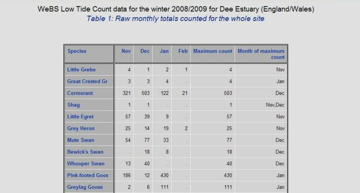 Table 1 gives the raw monthly totals for all species counted across the whole site.