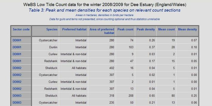 The production of maps depicting bird distribution has been a major theme from the beginning of the LTCs, with GIS technology providing great versatility in the range of presentational options available. These are available for all Low Tide sites for any species required that was recorded in that winter.