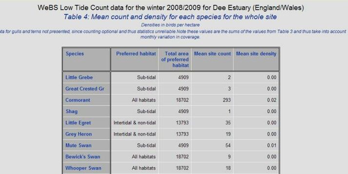 Table 4 gives the mean count and density for each species across the whole site.